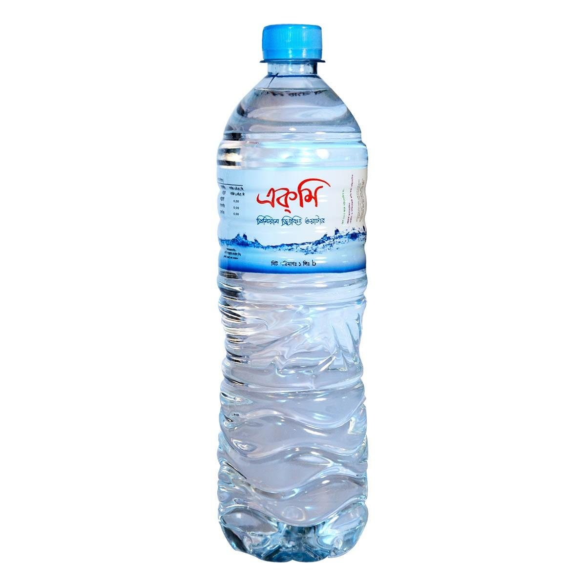 • Brand and Label: The main label is white and blue, featuring the brand name in red Bengali script which appears to read “āĻāĻ•āĻŽāĻŋ” (Acme). Below the brand name, there is smaller Bengali text that reads “āĻĒā§āϰāĻŋāĻŽāĻŋ⧟āĻžāĻŽ āĻĄā§āϰāĻŋāĻ‚āĻ•āĻŋāĻ‚ āĻ“ā§ŸāĻžāϟāĻžāϰ” (Premium Drinking Water). A small, faint blue graphic depicting mountains or water is visible at the bottom of the label.