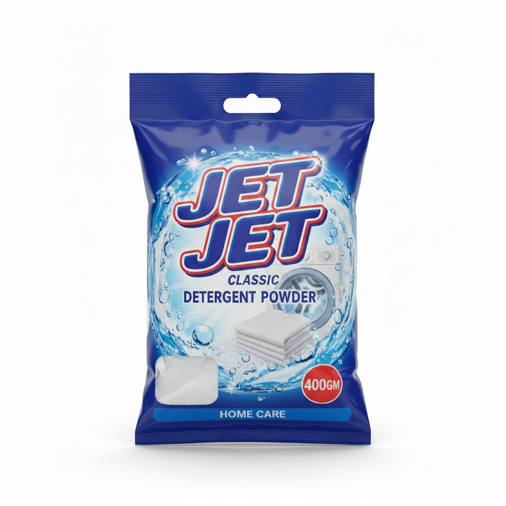 Achieve brilliant cleanliness and lasting freshness with Jet Classic Detergent Powder 400GM.