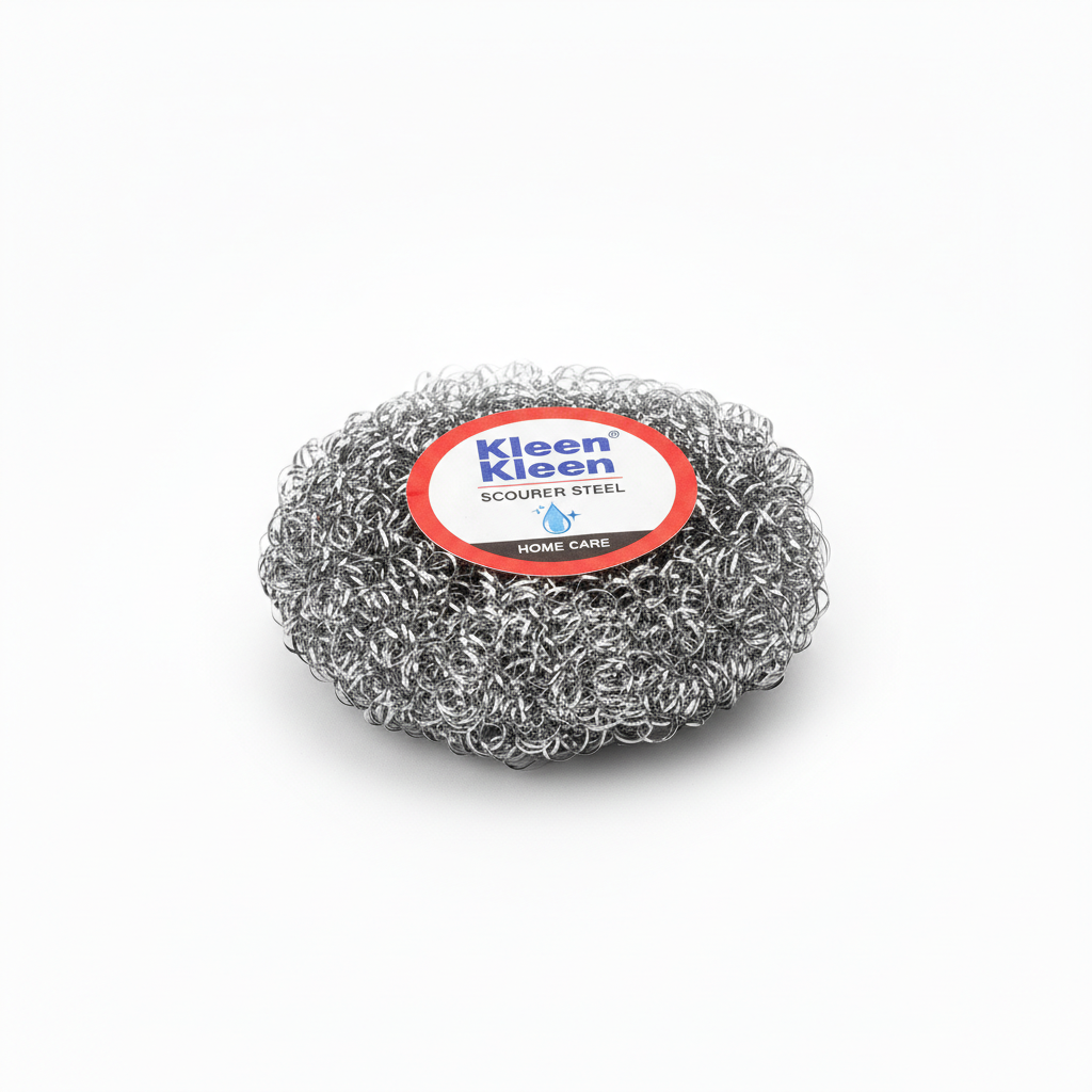 Tackle tough grime effortlessly with Kleen Scourer Steel – your ultimate solution for sparkling clean pots and pans.