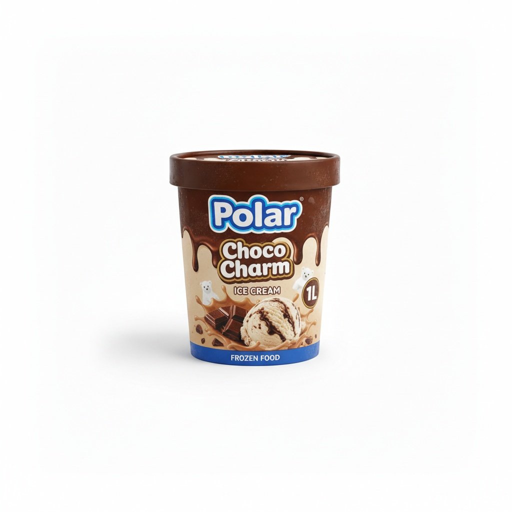Experience the enchanting delight of Polar Choco Charmby: rich, creamy chocolate ice cream in a generous 1L tub.